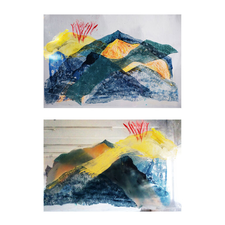 The mountains have a different color at three in the afternoon and a different color at five. Sometimes they are blue, others pink and in the winter maybe white. One in front of the other they lose their individuality and become one. When the trees bloom they create a new landscape that has little to do with what it was before, full of dry leaves. The other side of the mountain project consists of 17 works as changeable and ephemeral as these images.